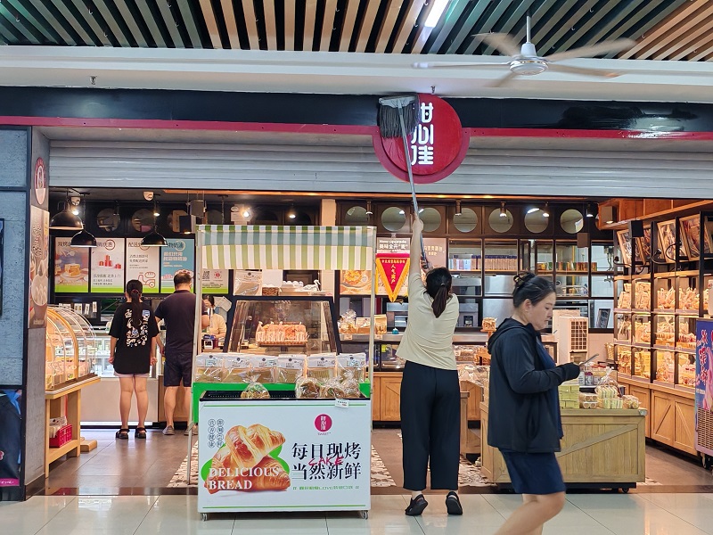 環(huán)境提升行動(dòng)中,商戶們積極響應(yīng)號(hào)召,自發(fā)對(duì)店鋪門頭、玻璃櫥窗進(jìn)行深度清潔,市場(chǎng)整體外觀煥然一新。物業(yè)團(tuán)隊(duì)則利用夜間閉店時(shí)段,對(duì)天花板積塵、蛛網(wǎng)進(jìn)行徹底清掃,進(jìn)一步夯實(shí)衛(wèi)生基礎(chǔ)。此外,策劃推廣部精心拍攝新商戶入駐宣傳視頻,通過(guò)市場(chǎng)群、員工群聯(lián)動(dòng)轉(zhuǎn)發(fā),顯著提升新商戶知名度,有效拉動(dòng)客流與經(jīng)營(yíng)業(yè)績(jī)。