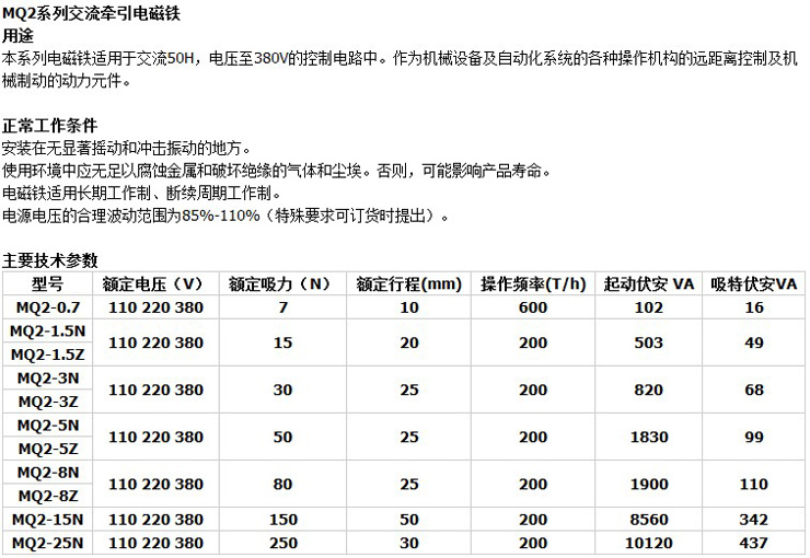 MQ2系列交流牽引電磁鐵